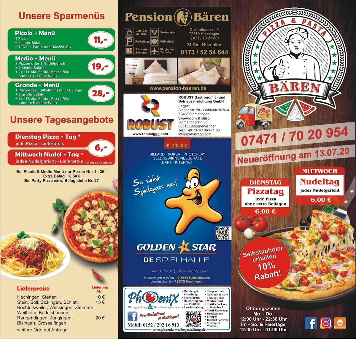 Welcome to Pizza Pasta Bären, an inviting pizzeria nestled in the heart of Hechingen, Germany. Offering an extensive menu that boasts mouthwatering pizzas and rich pasta dishes, this establishment takes pride in delivering authentic Italian cuisine right to your doorstep. With a convenient location at Gutleuthausstraße 3, Pizza Pasta Bären has quickly become a local favorite.